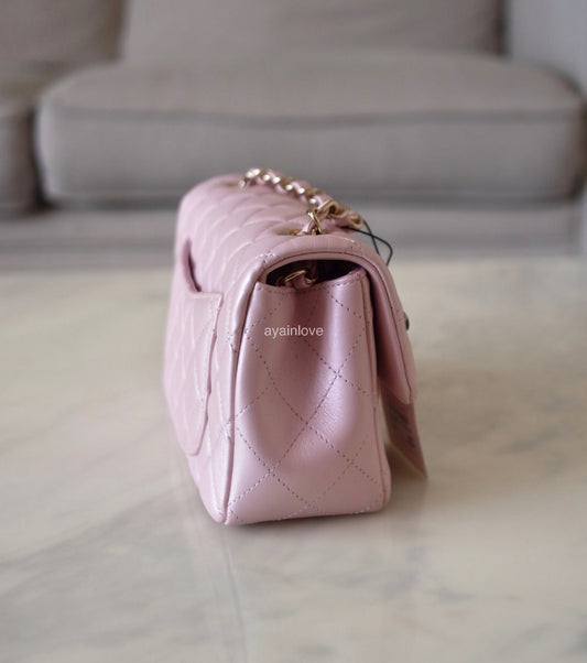 CHANEL 21S Iridescent Light Pink Calfskin Rectangular Mini Bag Light Gold Hardware