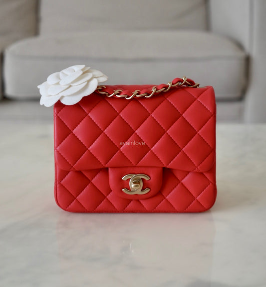 CHANEL 13S Red Lambskin Quilted Square Mini Flap Bag Matte Gold Hardware
