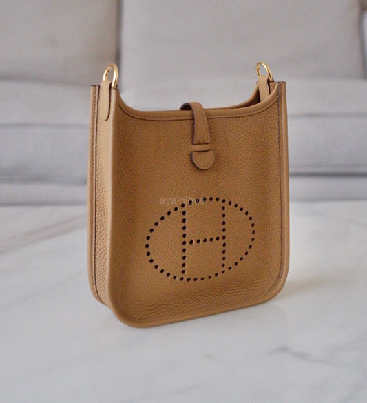 HERMES Mini Evelyne TPM 16 Amazone Biscuit Clemence Gold Hardware Z Stamp