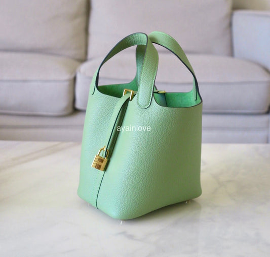 HERMES Picotin Lock 18 Vert Criquet Taurillion Maurice Gold Hardware