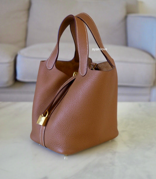 HERMES Picotin Lock 18 Gold Taurillion Maurice Gold Hardware D Stamp