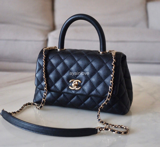 CHANEL Black Caviar Quilted Small Coco Handle 24 cm Light Gold Hardware