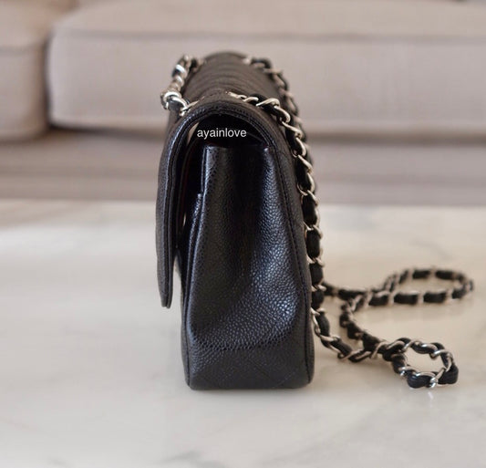 CHANEL Black Caviar Medium/Large Classic Flap Silver Hardware
