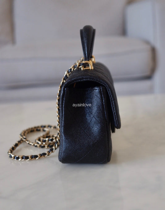 CHANEL 21S Black Caviar Top Handle Rectangular Mini Gold Hardware