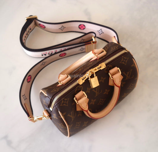 LOUIS VUITTON LV Monogram Speedy 20 Bandouliere Bag Black Strap