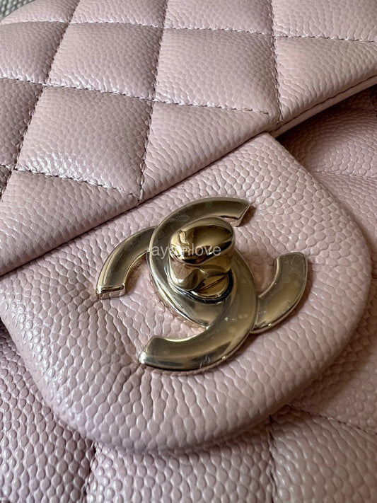 CHANEL 21C Rose Clair Light Pink Caviar Medium/Large Classic Flap Light Gold Hardware