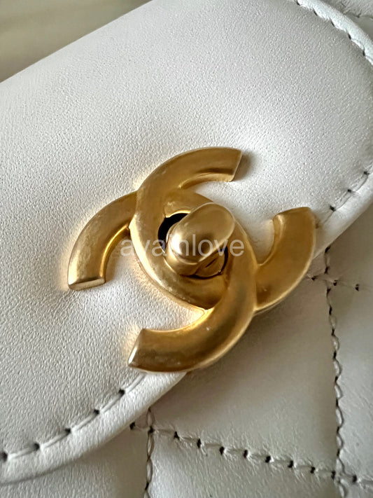 CHANEL White Shiny Calfskin Mini Kelly 19cm Shopping Bag Gold Hardware