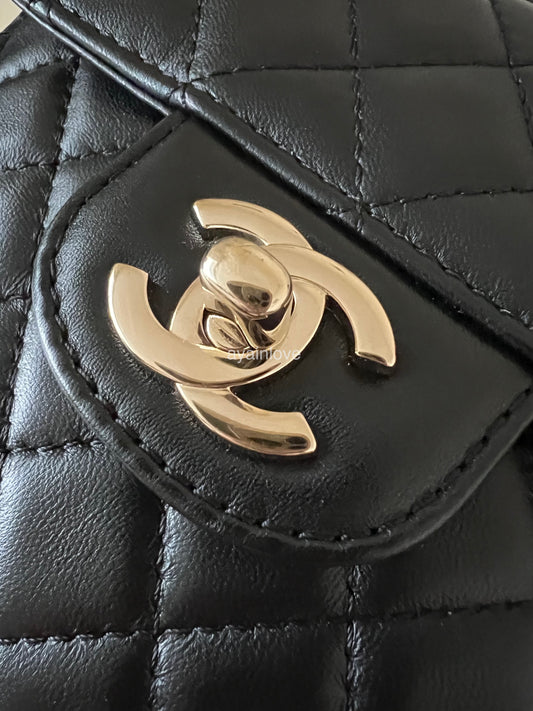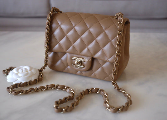 CHANEL 22B Beige Taupe Lamb Skin Classic Quilted Square Mini Flap Bag Light Gold Hardware