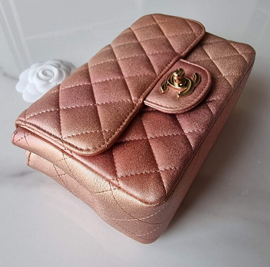 CHANEL 21S Iridescent Rose Gold Square Mini Flap Bag Light Gold Hardware
