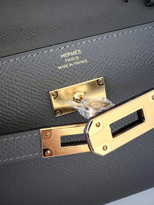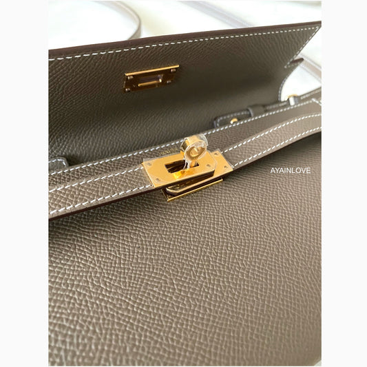 HERMES Kelly To Go 18 KTG Clutch Epsom Gris Meyer Gold Hardware