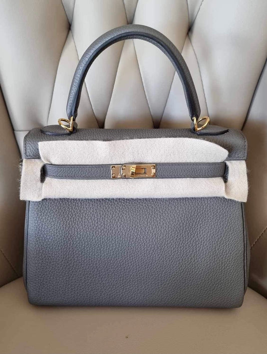 HERMES Kelly 25 Retourne Gris Etain Togo Gold Hardware Y Stamp