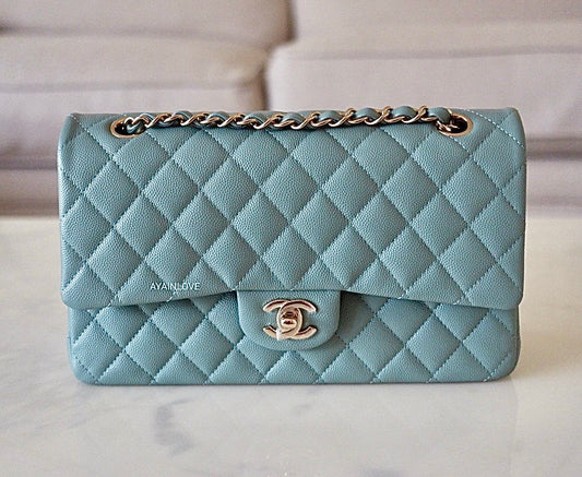 CHANEL 22C Green Caviar Medium/Large Classic Flap Light Gold Hardware