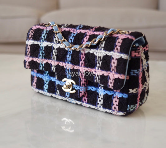 CHANEL 22S Black Multicolour Tweed Rectangular Mini Flap Bag Light Gold Hardware
