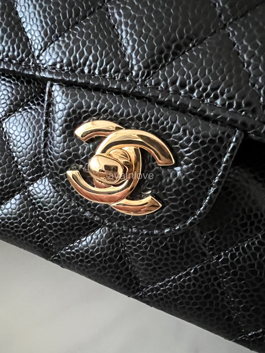 CHANEL Black Caviar Medium/Large Microchipped Classic Flap Bag Gold Hardware