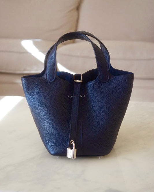 HERMES Picotin Lock 18 Midnight Blue Bleu Nuit Clemence Palladium Hardware