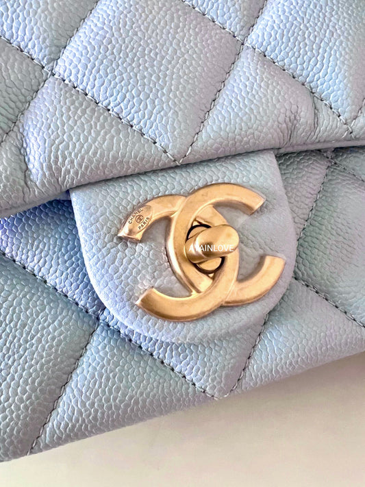 CHANEL 21K Iridescent Light Blue Caviar My Perfect Square Mini Flap Bag Gold Hardware