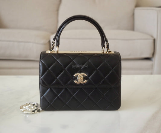 CHANEL Black Small Trendy Flap Bag Microchipped Light Gold Hardware