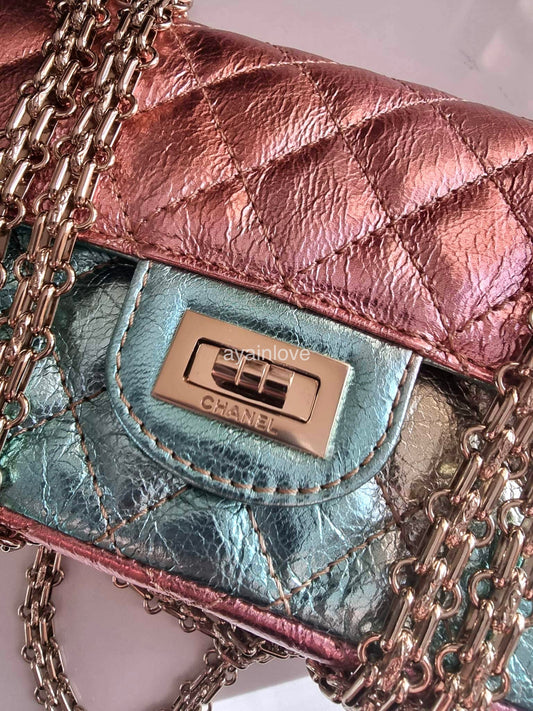 CHANEL 20A Rainbow Multicolour Ombré Reissue Rectangular Mini 2.55 Goat Skin Light Gold Hardware