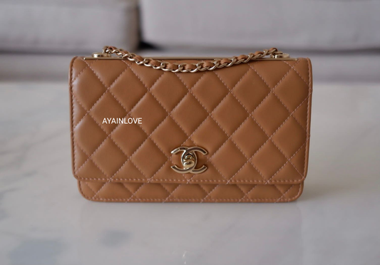 TRENDY WALLET ON CHAIN 2019 BROWN LIGHT GOLD HARDWARE