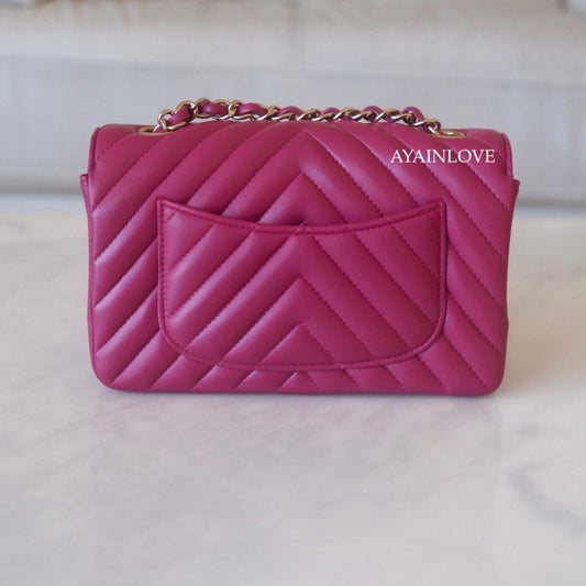 CHANEL 18B Raspberry Pink Lambskin Rectangular Mini Light Gold Hardware