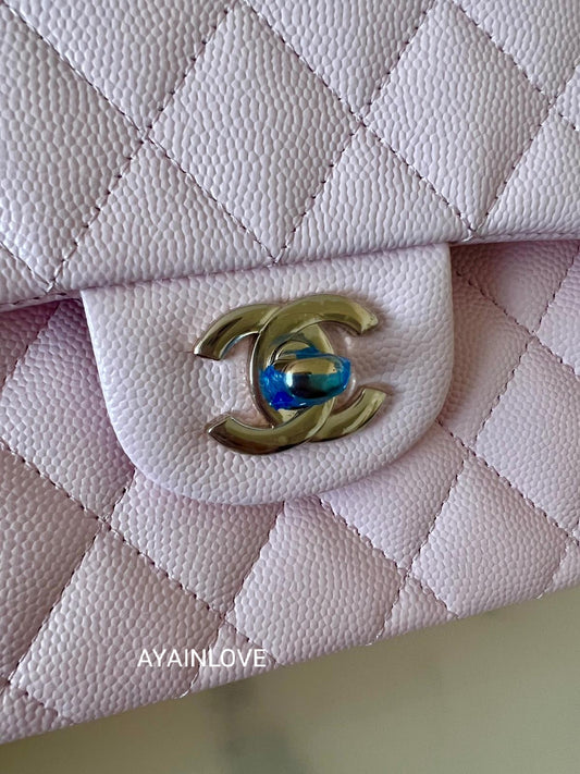 CHANEL 22S ROSE CLAIR LIGHT PINK CAVIAR SMALL CLASSIC FLAP LIGHT GOLD HARDWARE *NEW*