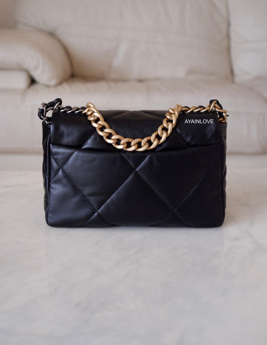CHANEL Small 19 Black Goatskin Flap Bag Mixed Hardware