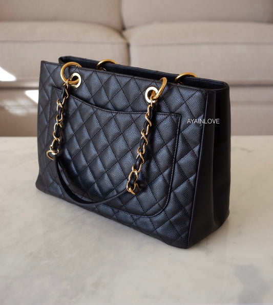 BLACK CAVIAR GRAND SHOPPING TOTE GST GOLD HARDWARE