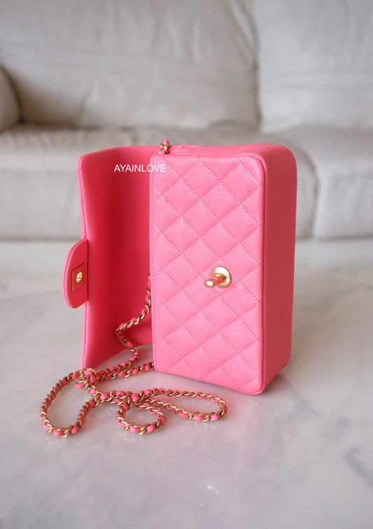 CHANEL 21S Pink Caviar Top Handle Rectangular Mini Gold Hardware