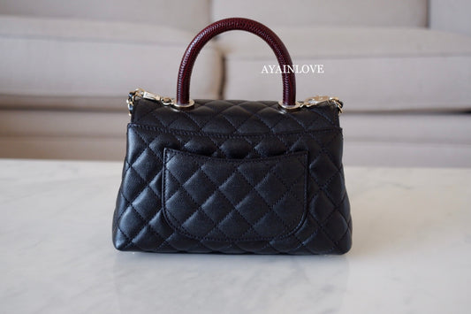 CLASSIC BLACK CAVIAR COCO HANDLE SMALL OLD MINI 24 cm LIGHT GOLD HARDWARE *NEW*