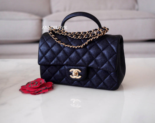 CHANEL 21S Black Caviar Top Handle Rectangular Mini Gold Hardware
