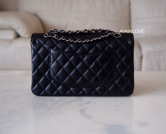 BLACK CAVIAR MEDIUM LARGE CLASSIC FLAP SILVER HARDWARE SERIES 19