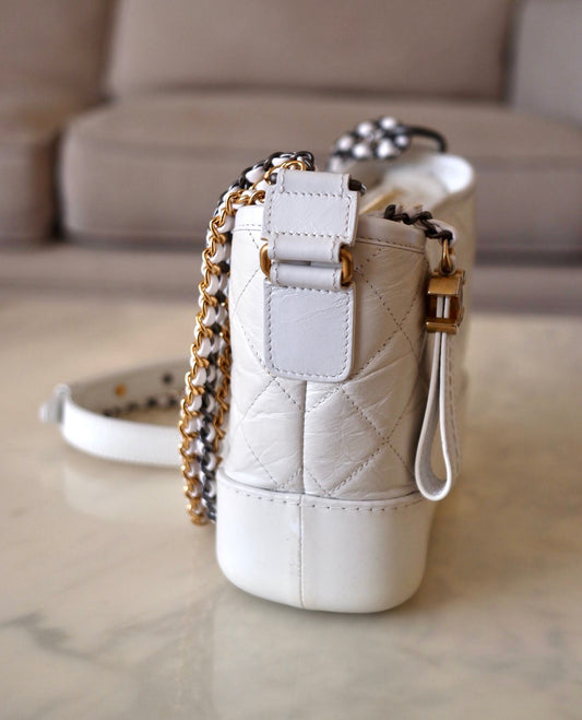 CHANEL White Calf Skin Small Gabby Gabrielle Bag Mixed Hardware