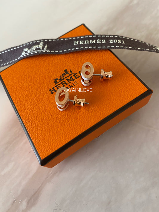 MINI H POP EARRINGS WHITE BLANC AND ROSE GOLD HARDWARE *NEW*