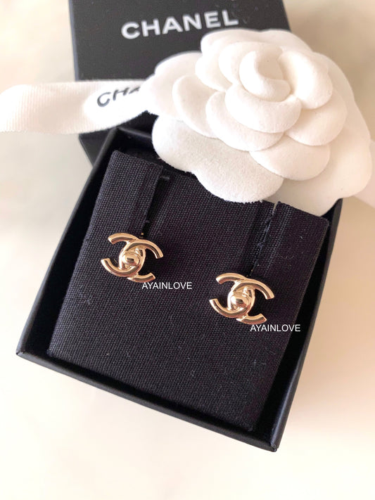 21S CC LOCK SMALL STUD EARRINGS LIGHT GOLD HARDWARE *NEW*