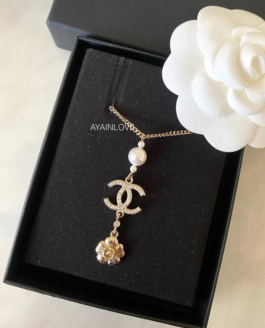 20C PEARL CC CAMELLIA ADJUSTABLE NECKLACE LIGHT GOLD HARDWARE