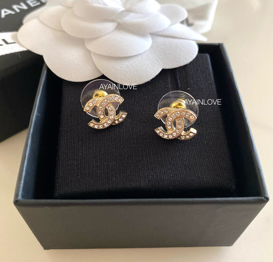 CLASSIC CC SMALL STUD CRYSTAL EARRINGS LIGHT GOLD HARDWARE *NEW*