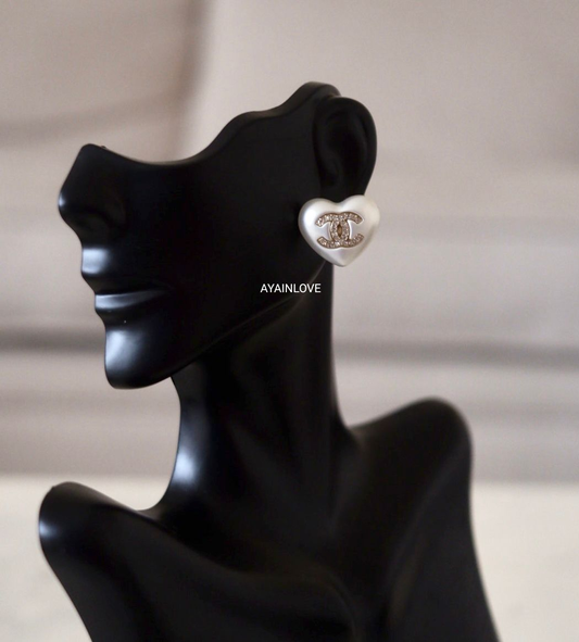 WHITE HEART CRYSTAL CC STUD EARRINGS LIGHT GOLD HARDWARE *NEW*