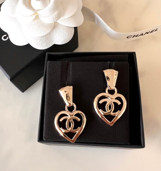22P CC HEART DROP EARRINGS LIGHT GOLD HARDWARE *NEW*