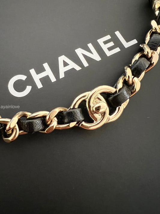 CHANEL 21S CC Turnlock Black Leather Chain Choker Necklace Light Gold Hardware