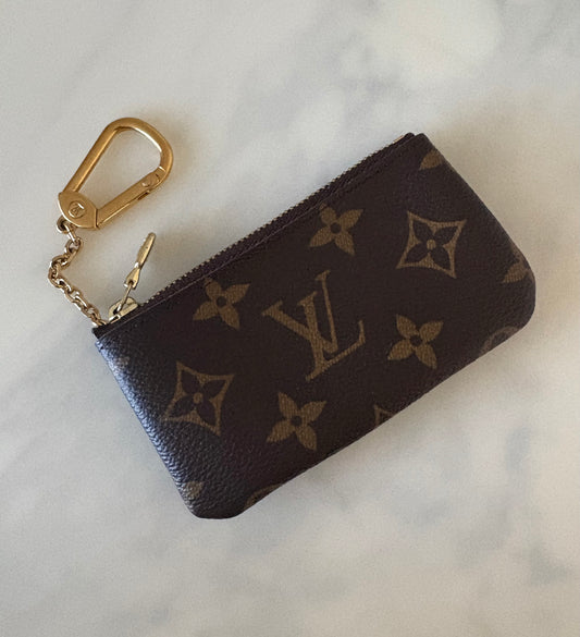 LV LOUIS VUITTON Monogram Key Pouch Card Holder Gold Hardware