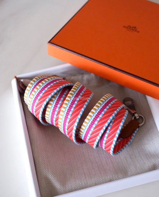 HERMES Multicolour 25 mm Pink Blue Yellow Strap 105 cm Palladium Hardware