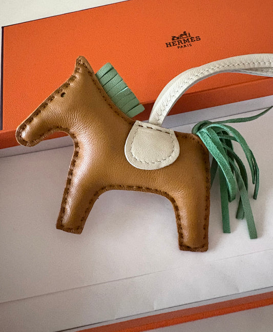 HERMES Rodeo PM Tricolour Sesame/Vert Criquet/Craie Bag Charm