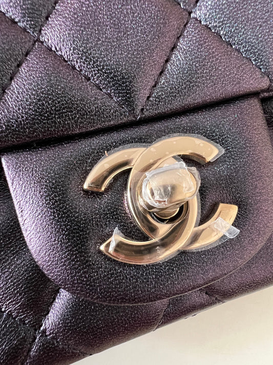 CHANEL 22B Iridescent Black (Purple Mermaid Undertone) Calfskin Square Mini Bag Light Gold Hardware