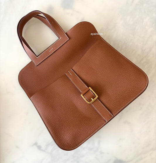 HERMES Halzan 31 Gold Clemence Gold Hardware D Stamp