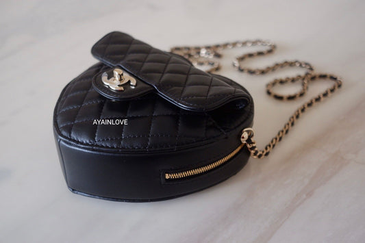 CHANEL 22S Black Large Heart Bag CC in Love Light Gold Hardware