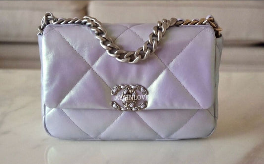 CHANEL 22P Iridescent Light Purple Lamb Skin 19 Small Flap Bag Mixed Hardware