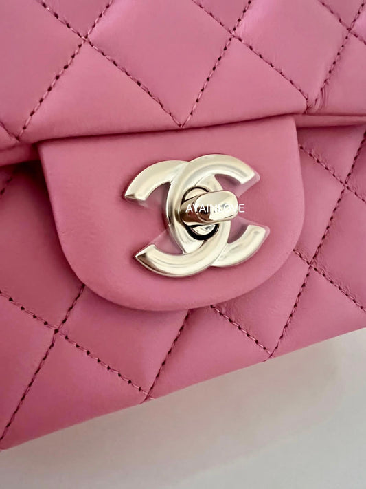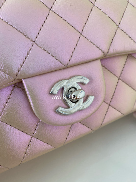 CHANEL 21K Iridescent Pink Calf Skin Rectangular Mini Silver Hardware