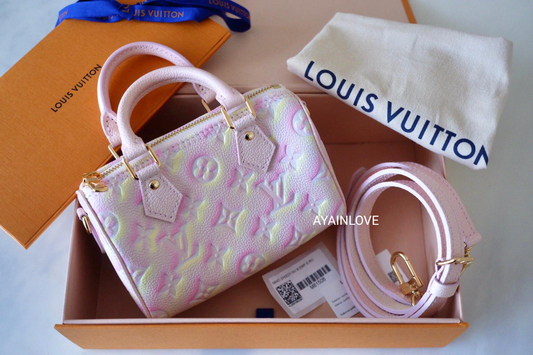 LOUIS VUITTON Nano Speedy Stardust Pink Leather Empreinte Gold Hardware