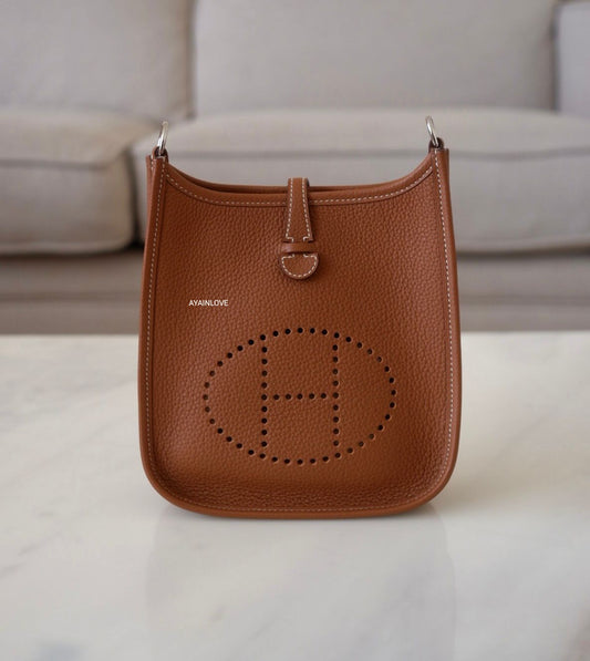 HERMES Mini Evelyne TPM 16 Amazone Gold Maurice Palladium Hardware with Gold Blanc Zigzag Strap Z Stamp