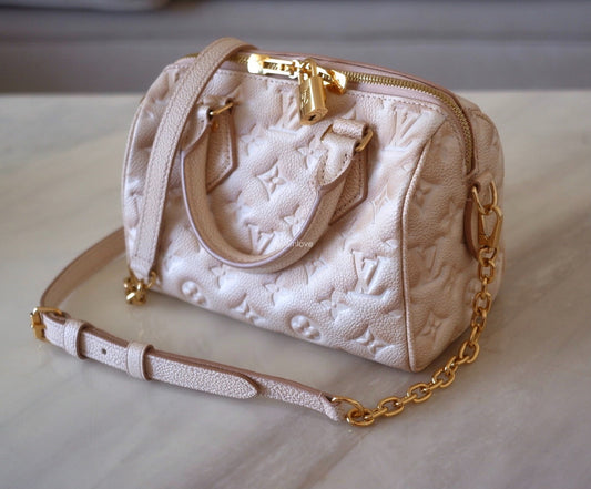 LOUIS VUITTON Speedy B Bandouliere 20 Stardust Beige Leather Empreinte Gold Hardware